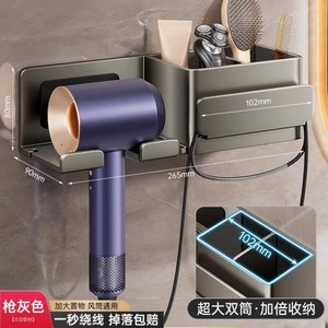パンチングなしのヘアドライヤー収納ラック、バスルーム収納、コード巻きヘアドライヤーラック、ヘアドライヤーホルダー、バスルームシェルフ