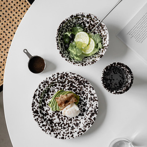 Ins風輸出欧米エナメル彩墨陶磁器食器セット茶碗皿牛乳カップコーヒーカップコップコップ