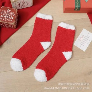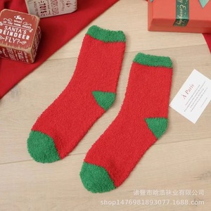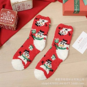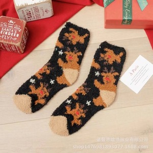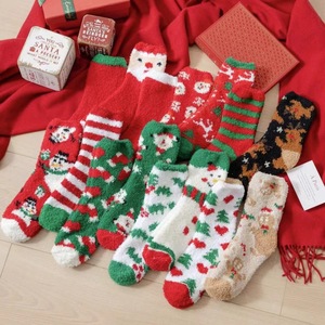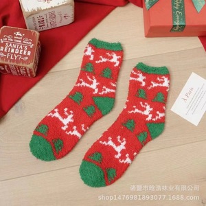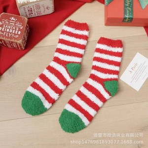 サンゴフリースクリスマスソックス 冬用厚手 男女兼用 クロスボーダー サンタクロース ハーフフリース ストライプ エルク柄 ファー付きフロアソックス