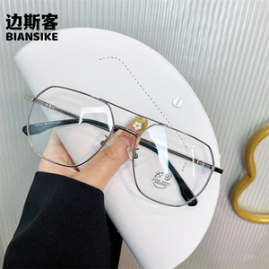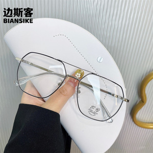 72703 インターネットセレブダブルブリッジメガネフレームファッショナブルな金属近視メガネ抗青色光目の保護フラットメガネは度付きで調整できます