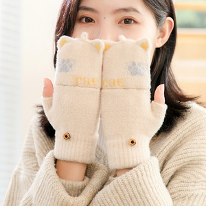 雪のショーの手袋の女性の冬のかわいい漫画の子供の半分の指はふたをひっくり返して保温します。