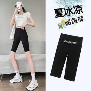 五分のサメのズボンの女性の夏の薄いタイプの高腰は尻の後の腰の印字のヨガのバービーを持ち上げて光を放つことを防ぎます。
