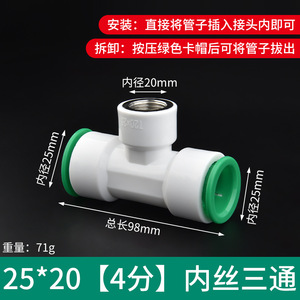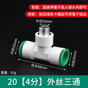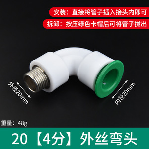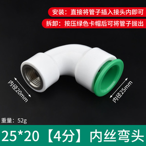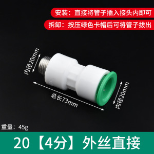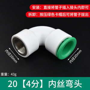 Ppr水管快速継手4分6分熱免除溶接直挿式20 25pe冷水管部品