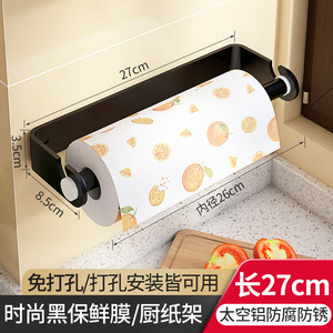 釘なし貼り: 厚いラップフィルム巻き紙ホルダー24cm-黒
