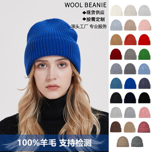 欧米の秋冬の冷たい帽子wool beanieの大きい頭の周りは厚い男女の帽子の純粋なウールのニットの帽子の越境の現物を覆います。