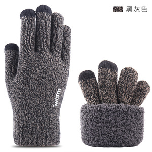 保温手袋の新型ベルベットは北極絨毛の冬のタッチパネルのニット手袋の男性の屋外二重防風を厚くした