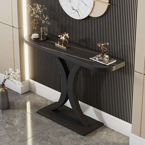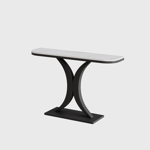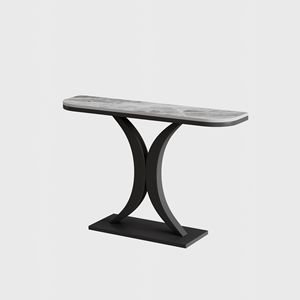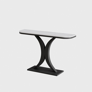 軽豪華な玄関テーブルは非常に狭いシンプルで現代的な玄関キャビネットは玄関台の半円に壁の岩板大理石に寄りかかっている