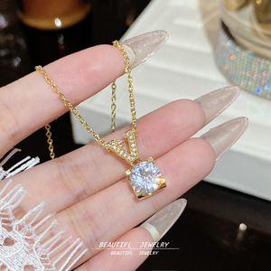 日韓風万能で上品なチタン鋼ネックレス、軽やかな高級感、個性的なデザインのペンダント、新作、色褪せない、シンプルな鎖骨チェーンアクセサリー