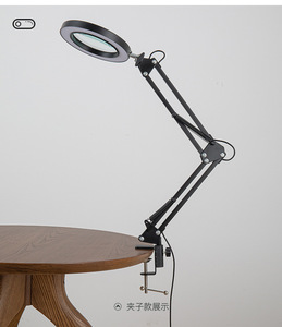 白色金属クリップ式ベース + 拡大鏡 + 三色10速調光