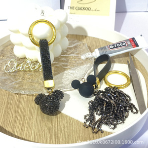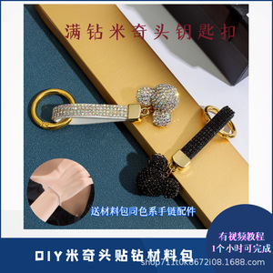 高級なダイヤモンドの米奇の頭を入れてドリルの材料を貼ってdiyの手作業でネットの赤い爆発のカバンの車の鍵のキーホルダーを作ります。