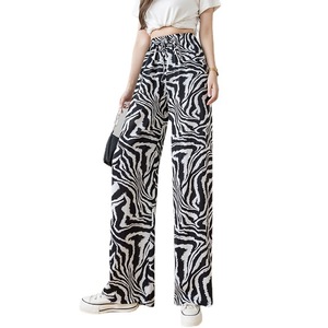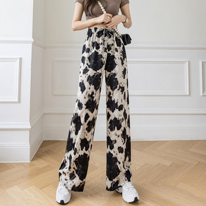 水墨画プリントのワイドレギンスの女性2025夏の新型のゆったりした薄いタイプの氷の糸の高い腰の垂れ下がった感じのカジュアルなモップのズボン