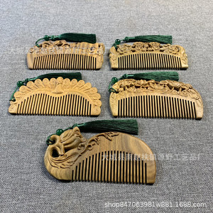 メーカー卸売りアルゼンチン緑檀木櫛古風復古彫刻木櫛細歯彫刻木彫刻客先に送る
