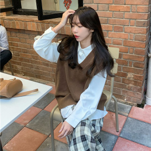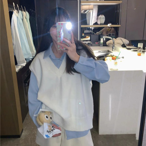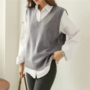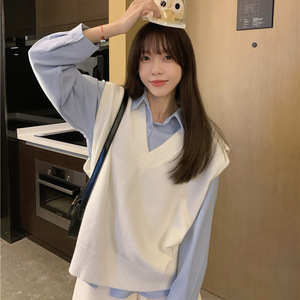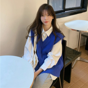 クラインブルー無地セーターベストニットジャケット女性の秋冬 2025 新しいアウター v ネックトップ