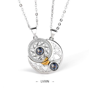 愛の日月のカップルの投影のネックレスの男女のペアのペンダントの磁石insの大衆の設計の鎖骨のネックレスの卸売り