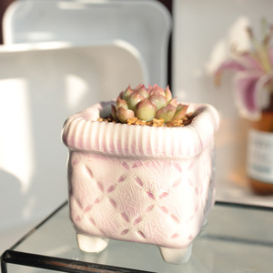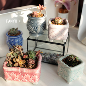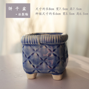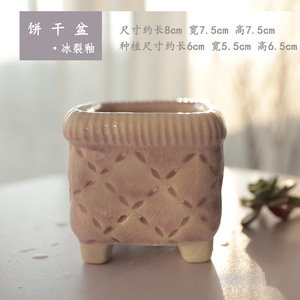Ins風網紅清新氷裂釉粗陶方形創意ビスケット箱多肉植物創意陶磁器植木鉢