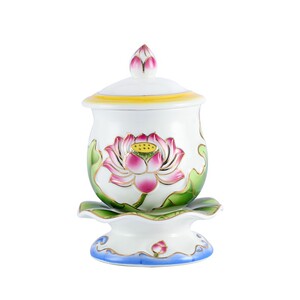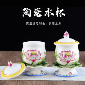 陶磁器のレリーフ蓮の花の給水カップ家庭用の仏堂は仏杯の浄水杯の観音菩薩の仏前の給水カップの置物を提供します。