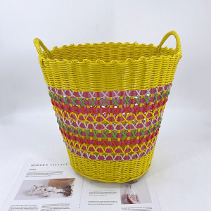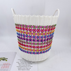 洗濯かごプラスチック藤編大容量収納バスケット円筒形洗濯かご洗濯かごトイレ収納かご