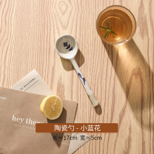 小さな青い花-粗い陶器のスプーン