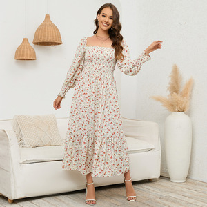 Swintager 2025春の新型妊婦のシフォンのスカートの小さい花のワンピースのアマゾンの長袖のワンピース