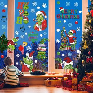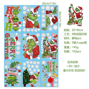 2025新アマゾンクリスマス静電気窓貼り鬼精霊格林奇シールショーウインドーガラス貼りクリスマス怪傑