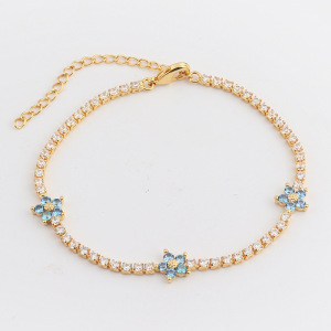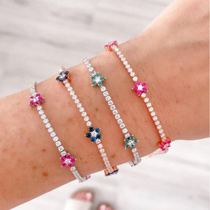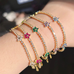 欧米の対外貿易のアマゾンのマイクロはジルコンのブレスレットの多色の5弁の花のジルコンの象眼のシンプルで甘い女性のブレスレットを入れます。