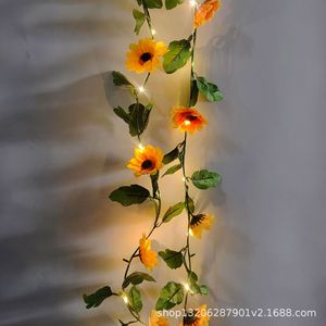 国境を越えた売れ筋のLEDソーラーグリーンリーフ籐ストリングライトひまわりグリーン植物屋外中庭ホリデーデコレーションライト