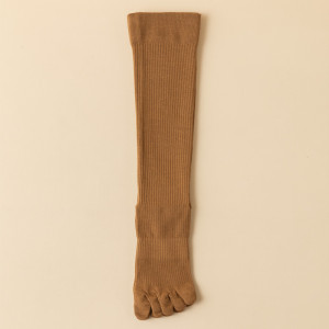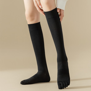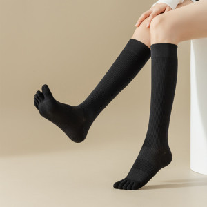 女性用5本指ソックス、春と秋の膝丈スポーツ無地圧力ふくらはぎソックス、パーソナライズされた分割つま先滑り止めハイソックス、綿