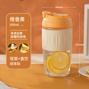 JEKOコップ耐高温ガラス牛乳コーヒーカップストローカップ携帯オフィス高颜値ダブルカップ