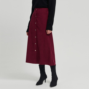 アマゾンの独立駅のコーデュロイの半身のスカートの長いタイプの単列は高くて腰の秋冬の長いスカートの修身のフランスの婦人服の潮を掛けます。
