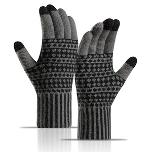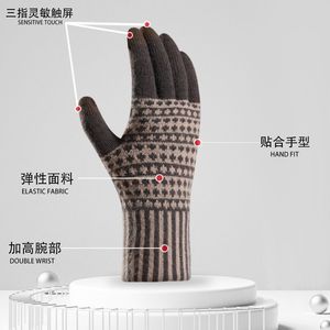 クロスボーダー新作タッチスクリーン手袋、冬用メンズベルベット手袋、防寒性と暖かさを保つアウトドアサイクリングウールニット手袋