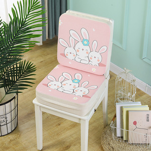 かわいいアニメの子供が椅子を高くして日常の通用教室の自動車が高くなって座布団を厚くします。