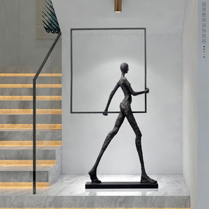 抽象的なアイデアのガラス鋼は着地して輪の人物の彫刻を持って大きく飾ってホテルの玄関の通路を飾って芸術品を飾ります。