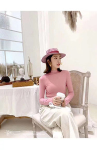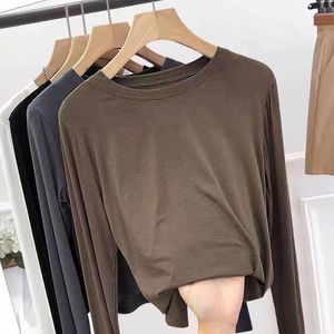 シンプルなモダール素材のハーフタートルネックインナーウェア、レディース、2024年秋モデル、韓国風長袖、春秋用、重ね襟トップス