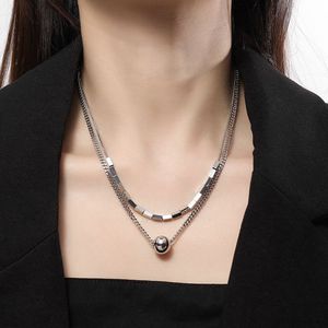 ファッション潮クール冷たい風二重積層装着幾何学ブロックボールペンダントネックレス女性ネット赤チタン鋼