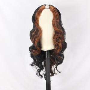 クロスボーダー欧米かつらv型ロングカールv-part wigs混金色大波化繊頭カバー許昌メーカー
