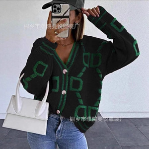 ヨーロッパとアメリカのクロスボーダータオル刺繍Vネックシングルブレストニットカーディガン2025秋冬新作ルーズセータージャケットトップ