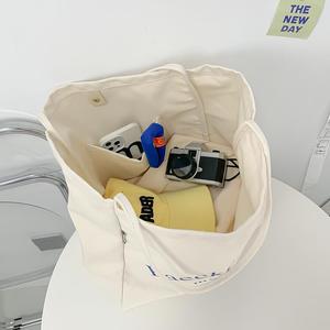 Thecotto自作磁気バックル金厚実大容量トート通勤学生レジャー帆布包アルファベットシングル肩