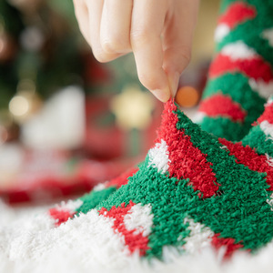 クリスマスの靴下のプレゼントの箱の女性のサンゴの絨毯の厚い保温の家の床の靴下の秋冬のぬいぐるみの床の靴下の睡眠の靴下