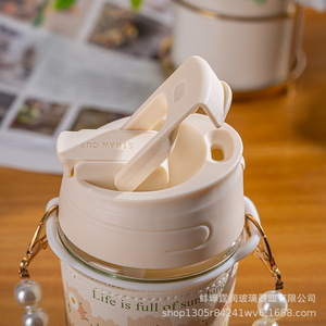 高颜値ストローカップ真珠手提げチェーンカップ卸売り女子学生随行コーヒーミルクティーチューリップガラスカップ