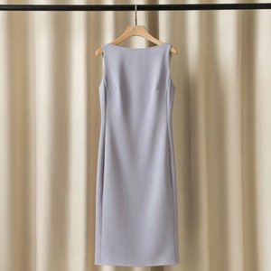 T*h トリアセテートフィッシュテールスカート~ノースリーブスリムウエスト通勤エレガントデザインミモレ丈ワンピース