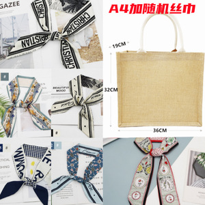 A4 横型 32*36*19CM プラス シルク スカーフ、ナチュラル カラー、ジュート。