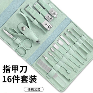 16点セットの爪の剪定道具セットの皮をむいてステンレスのネイルをこすります。