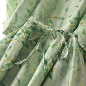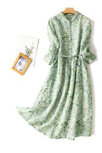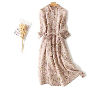 十三行早秋対外貿易原単カットラミー麻長袖ワンピース綿砕花締めウエストワンピース