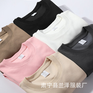 メーカーの現物の華綿の丸首の男女の服の秋冬の上で新しい320gの経典の潮流は百合の純色のコートを配合します。