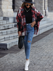 フラッシュパイル欧米の新型カジュアルパイル女装帽子五分袖ゆるいスコットランド風格子ボタンなしコート