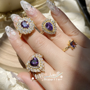 Sisi小富婆貴気夫人ブドウ紫シリーズの指輪は18kの黄金をメッキして、きらきらと輝く贅沢な卸売りをします。