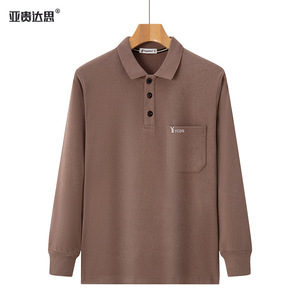秋冬の新型両面徳絨毛長袖tシャツ中年ポケット襟付きボトムシャツ厚い保温poloシャツ上着