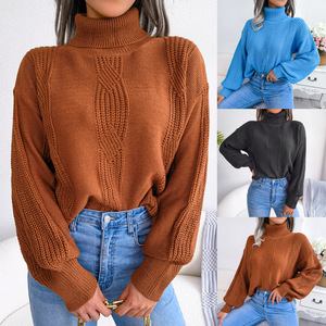 Ins風実拍秋冬欧米高襟麻花灯籠袖底セーターアマゾン爆金クロスボーダー女装