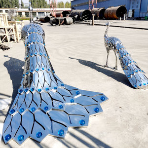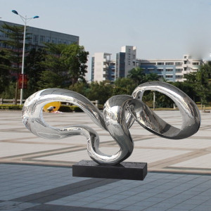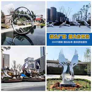 大型ステンレス彫刻カスタム抽象動物鹿クジラ水景月円環波花透かし球景観品