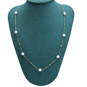 Zhuji G18K ゴールドベビーブレス淡水パール 6-7mm ラウンド高光沢マイナスペンダントネックレス鎖骨チェーンシンプル